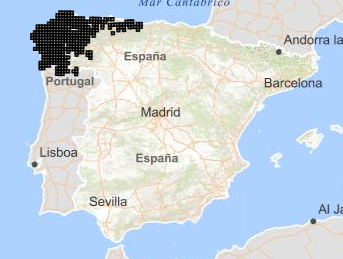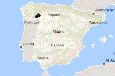 Presencia potencial dentro del campo de tiro y maniobras de El Teleno: Probable. Fuente: EIDOS (https://iepnb.es/areas-tematicas/especies-silvestres/eidos/11632/Chioglossa%20lusitanica#). |
