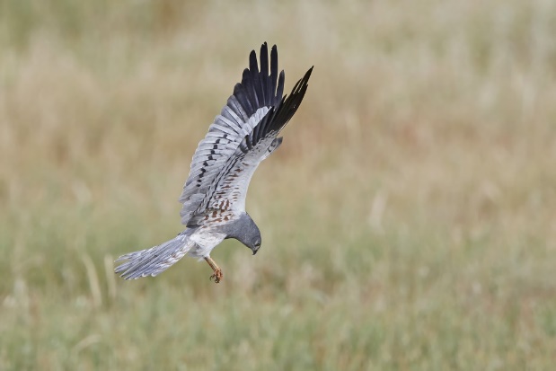 Protección : Vulnerable en el CEEA. Ecología: rapaz de mediano tamaño (longitud 39-46 cm y envergadura 102-116 cm) y formas particularmente esbeltas, se caracteriza por poseer unas alas largas, estrechas y relativamente puntiagudas, cola muy larga y tarsos de gran longitud.El macho adulto típico es de color gris ceniza en el dorso, con las zonas ventrales ligeramente más claras Hábitat: especie particularmente ligada a los cultivos de cereal (sobre todo, trigo y cebada), que constituyen su hábitat principal, aunque una fracción minoritaria de aves se instala en matorrales, pastizales o humedales, fundamentalmente en regiones montanas del norte y en áreas costeras. Se alimenta de pequeños y medianos vertebrados, muy especialmente ratones y topillos. Época de cría: