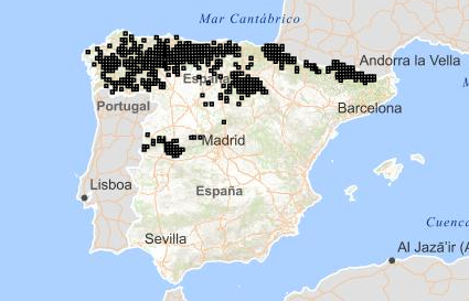 Amenazas: pérdida del hábitat debida a los cambios en los sistemas de aprovechamiento agroganadero en áreas de montaña, las reforestaciones, la erosión, los incendios y el desarrollo de infraestructuras urbanísticas y de turismo de montaña. Otros factores que le presionan son la caza ilegal y el cambio climático, que contribuye a las extinciones en las áreas de menor altitud. Distribución: En España se reparte únicamente por los macizos montañosos del tercio norte, donde presenta una distribución fragmentada y separada en tres núcleos principales: Pirineos, Sistema Ibérico occidental y Cordillera Cantábrica.